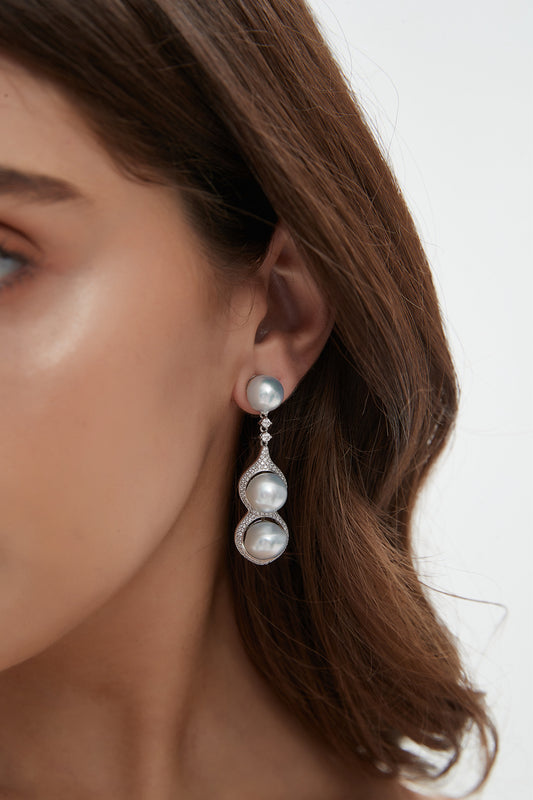 Baroque Seawater Pearl Earrings with Fancy Diamond