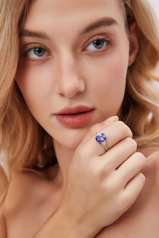 Blue Tourmaline Emerald Cut Ring with Diamond