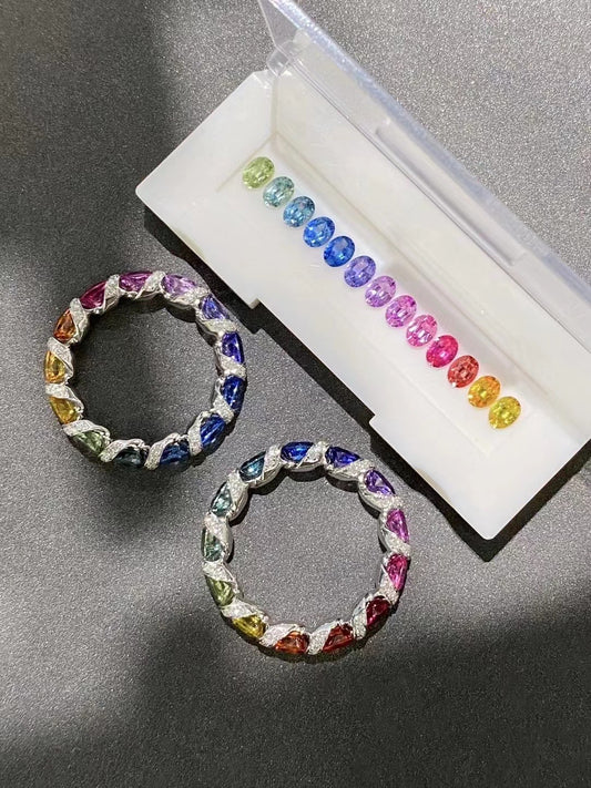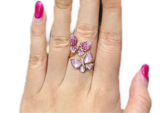 Red Pink Sapphire Fancy Diamond Mother of Pearl Butterfly Ring