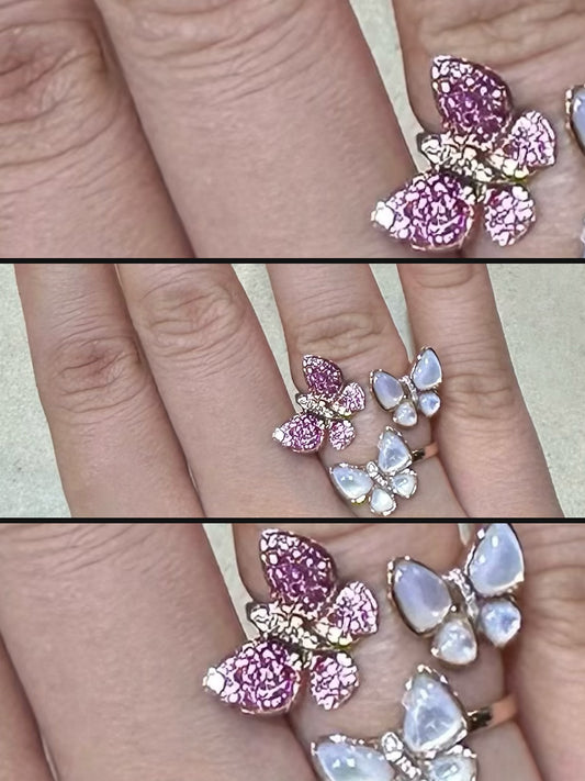 Bi-color Pink-White Tourmaline Butterfly Ring with Diamond